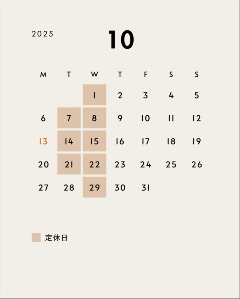 10月の定休日と営業日のお知らせをいたします。