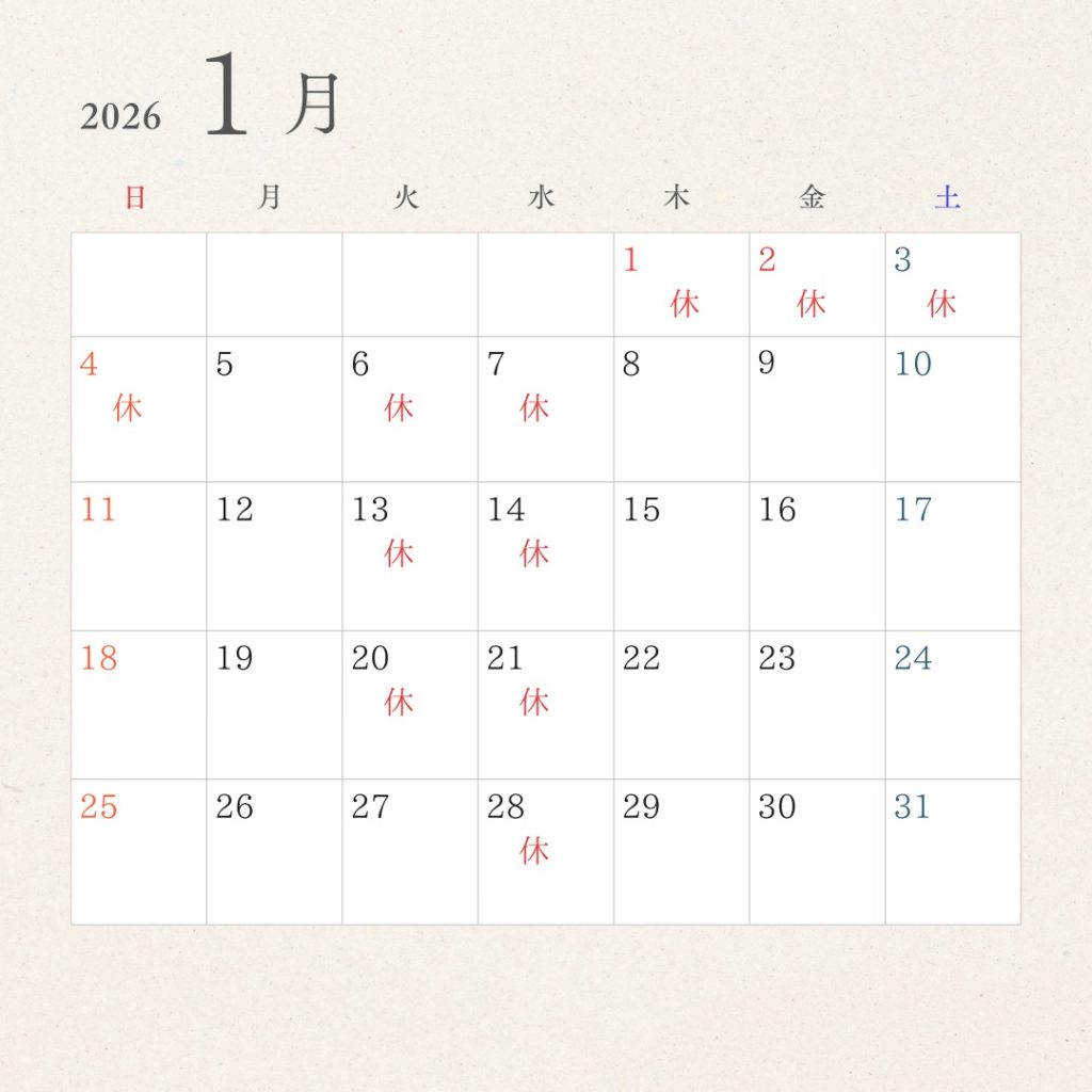1月の定休日と営業日のお知らせをいたします。
